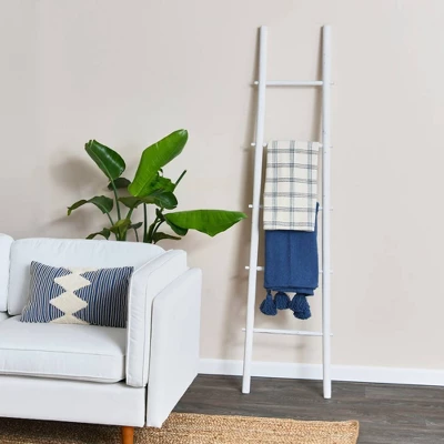 Fusing a ladder silhouette with a crisp white finish, this eye-catching wood decor is a distinctive addition to your well-curated home. At 70″ tall, this statement-making design draws the eye in aesthetics ranging from farmhouse-chic to eclectic boho. Add this piece to the home office to complement a beachy coastal look, then pair it with rattan-woven furniture and faux pineapple decor for a cohesive display. Its solid color pattern is perfect for leveling out vibrant palettes or matching monochromatic looks. Use its distressed details to add an antiqued touch to the living room or add it to the guest room to complement a rustic arrangement.
