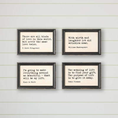 Quotes from F. Scott Fitzgerald, William Shakespeare, Elsie de Wolfe and Pablo Picasso are featured in these frames. “I’m going to make everything around me beautiful – that will be my life.” That is a good quote to read daily to instill in our hearts and minds what is important in life.
