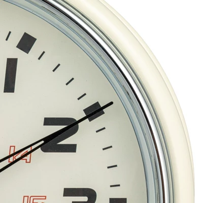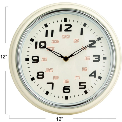 This 12-inch Round Metal Wall Clock combines functionality with style. The chrome finish provides a modern touch, while the cream color offers a warm, inviting look. It’s an ideal addition to any room, enhancing the space with its simple yet sophisticated design. The clock’s round shape and metal construction make it a durable choice for those who appreciate a blend of contemporary and classic elements in their timekeeping devices. The large numbers and clear clock hands make it easy to read from a distance, perfect for keeping track of time throughout the day. Hang it in the kitchen, living room, or office for a sleek and practical decor piece.