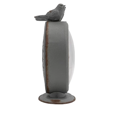- A lovely and whimsical accessory, this pewter mantel clock features a grey color and two birds perched on the top