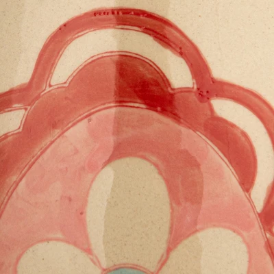 - A picturesque stoneware pitcher, adorned with delicate flowers and a striking red handle, that exudes rustic charm