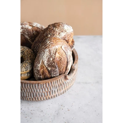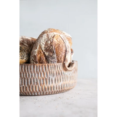 This simple wooden bowl is a great staple to have in any kitchen. Made out of mango wood, this bowl can easily be set out and filled with fruit, or set atop a dining table or coffee table with small decorative accents inside