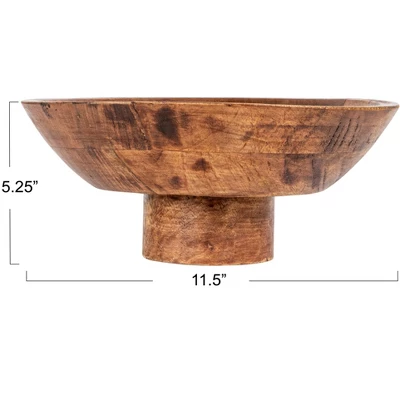 This hand-carved bowl is made of 100% mango wood. This footed, mid-size bowl can be used in a variety of ways. The bowl can be used as display area on a coffee table, holding fresh fruits and vegetables in the kitchen, or as a serving piece for a special occasion.