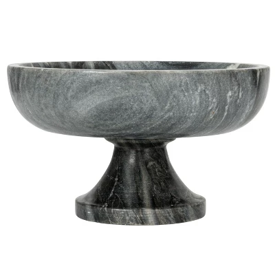 - A sophisticated and elegant pedestal bowl that features a round grey marble bowl on a sturdy base