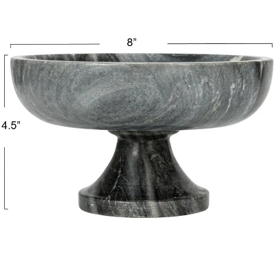 This marble pedestal bowl is a beautiful and functional accessory for the home kitchen. It features a round marble bowl that has a smooth and polished finish, giving it a sophisticated and elegant look. The bowl rests on a sturdy base that provides stability and support. This pedestal bowl is perfect for serving snacks, fruits, salads, or desserts, or for displaying decorative items, such as candles, flowers, or shells. It can enhance various decor styles, from Scandinavian to French country, adding a touch of style and charm to the space. This pedestal bowl is made of durable marble for durability and beauty. It measures 8 inches in diameter and 4.5 inches in height.