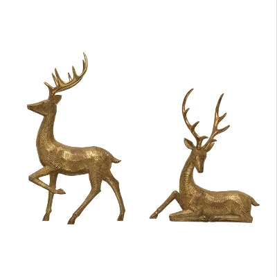 - This resin deer in gold comes in a set of 2 styles and adds a touch of glamour and luxury to any holiday display