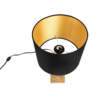 - Gold finished resin lion table lamp with black linen shade