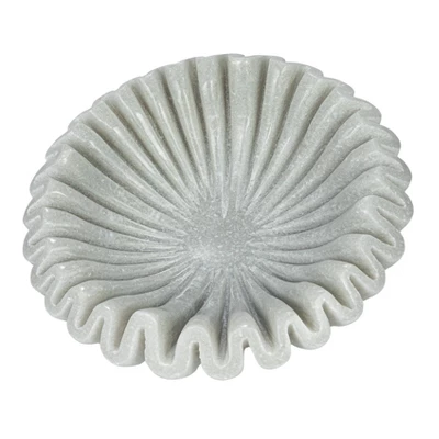 - A beautiful dish with a marble material and a pleated design that adds a touch of elegance and texture to any space
