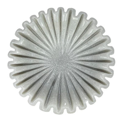 This elegant dish features a marble material and a pleated design in white color. The dish is made of durable marble, which is a natural and sustainable material that offers durability and elegance. The marble has a smooth and glossy surface that adds a touch of contrast and sophistication to the dish. The pleated design creates a textured and stylish feel, while the white color is neutral and easy to match with any color scheme. Use it to serve snacks, fruits, desserts, or any other food items, this dish will reflect light and create a cozy feel. The dish can also be used as a decorative piece or a catch-all tray for the keys, jewelry, or other small items. The dish comes fully assembled and ready to use. It can be placed in the kitchen, dining room, living room, or any other cozy corner of the home. This dish is a beautiful piece of art that will enhance the home with its beauty and functionality.