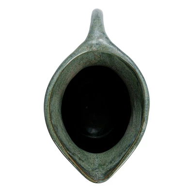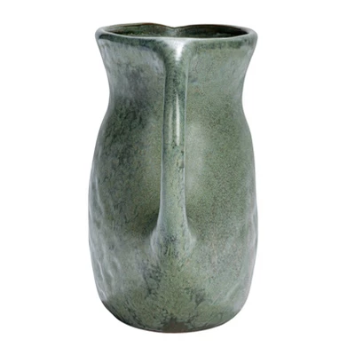 This stoneware pitcher with reactive glaze in matte teal is a stunning and practical addition to any home. It is made of stoneware, which is a premium and sturdy material that can withstand high temperatures and frequent use. It is microwave, oven, and dishwasher safe, making it easy and convenient to use and clean. It has a reactive glaze finish in matte teal, which creates a smooth and serene appearance. The glaze also makes each piece unique and slightly different. The pitcher has a round shape and a curved handle that makes it easy to hold and pour. It has a large capacity of 2.5 quarts, which is enough to serve a large group of people. It can be used for serving water, juice, milk, or tea, or for displaying flowers, plants, or utensils on a table or countertop. It can blend with any farmhouse, French country, coastal, lodge, or boho style kitchen or dining room. It measures 9 inches in length, 5 inches in width, and 8.5 inches in height, making it a generous and spacious pitcher. This will impress the guests and enhance the food presentation.