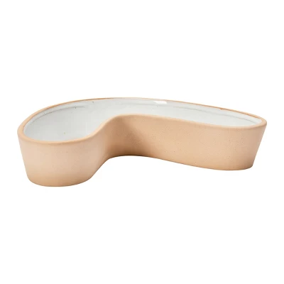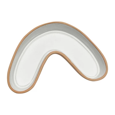 This unique dish is a beautiful addition to any kitchen. Made out of stoneware, this U-shaped dish features a beautiful terracotta colored exterior and white interior. This serving piece is great for chips or crackers, and adds style to any gathering